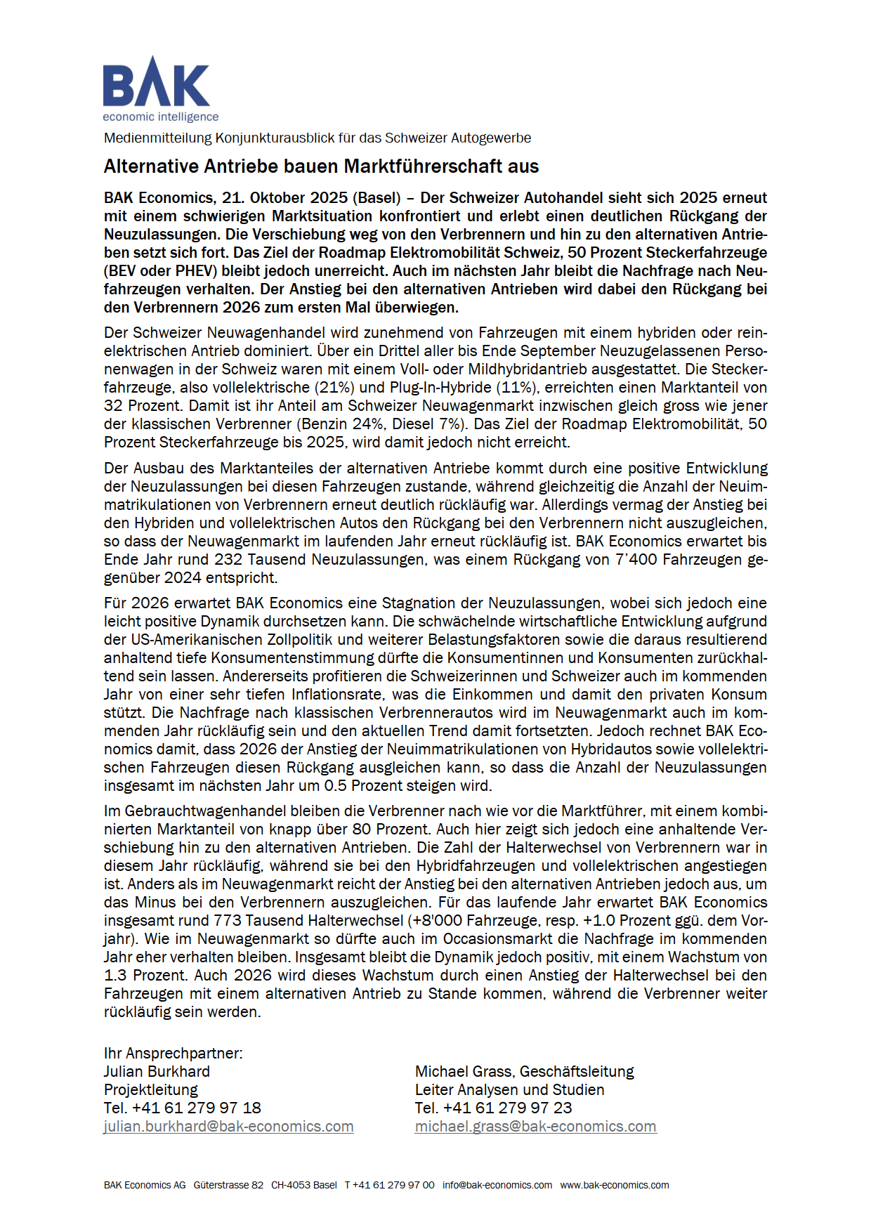 Medienmitteilung Konjunkturausblick für das Schweizer Autogewerbe