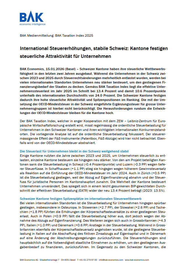 BAK Medienmitteilung: Wirkungsanalyse zum Schweizer…